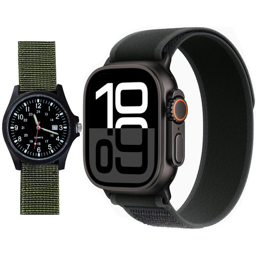 ساعت هوشمند 2.02 اینچی ویکتوری مدل HX9 ULTRA MAX با بند پارچه ای به همراه ساعت مچی