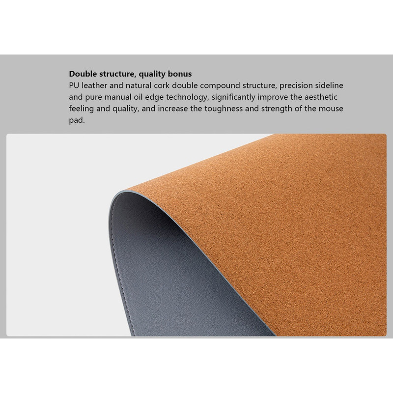 بخش زیرین موس پد سایز بزرگ شيائومی از مواد پلاستیکی ساخته شده است که از اصطکاک بالایی برخوردار است و مانع از لغزش موس پد شده، به خوبی رو میز می چسبد. برای حمل آسان این موس پد، شیائومی کیسه ای مناسب برای آن تدارک دیده است که موس پد به حالت لوله شده در آن جای می گیرد.