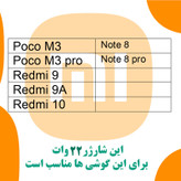 شارژر دیواری شیائومی مدل این یک شارژر اصلی و رو کارتنی است که اصالت آن را تضمین میکنیم.کیفیت شارژر های اورجینال با نمونه های بازاری به هیچ عنوان قابل قیاس نبوده و از طرفی تشخیص اصل و غیر اصل بودن شارژر برای خریدار بسیار دشوار است.این شارژر اورجینال در بسته بندی سبز رنگ صوفیا قرار داده شده و محتویات داخل آن شامل یک کله شارژ و یک کابل اورجینال است.بنابر این اگر شارژری به صورت فله ای برای شما ارسال شد آن یک شارژر کپی است.که باید آن را برگشت بزنید. نکته خیلی مهم :طبق قوانین دیجی کالا فروش کالای کپی بجای اصلی و کالا های مغایر تخلف محسوب می شود و با فروشندگان متخلف برخورد خواهد شد(چنانچه کالا مغایر برای شما ارسال شد می توانید کالا را برگشت زده و برای فروشنده متخلف شکایت ثبت کنید)ممکن است بعضی از فروشندگان کالای مشابه با کیفیت پایین تر را ارسال کنند بنابراین در زمان دریافت محصول دقت لازم را داشته باشید که دقیقا همین محصول را با همین ظاهر و مشخصاتی که توضیح داده شده در تصاویر را تحویل گرفته و از تحویل گرفتن شارژر های متفرقه و فله ای که از طرف فروشنده گان متخلف ارسال میشه خوداری کنید.این یک شارژر 22.5واتی است که مناسب برای گوشی های 22.5 وات و 18 وات است قبل از سفارش مطمعن شوید که گوشی شما 22.5 وات و یا کمتر است لیست گوشی های سازگار با این شارژر در تصاویر بالا موجود است.چنانچه سوالی در مورد این محصول دارید میتوانید در بخش پرسش مطرح کنید و ما در سریع ترین زمان ممکن پاسخ خواهیم داد.