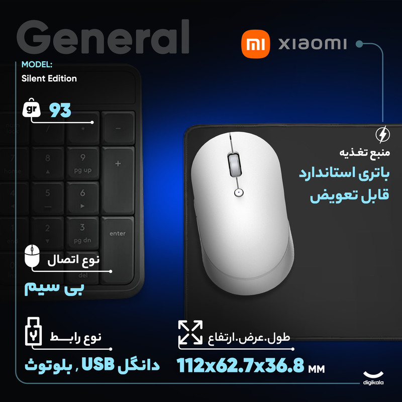 ابعاد112x62.7x36.8 میلیمتر
