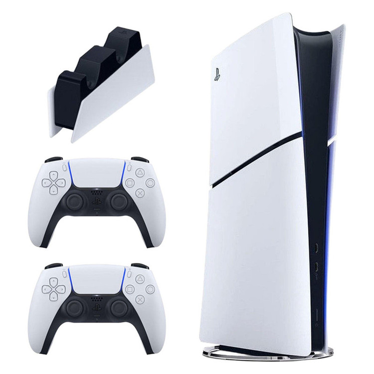 کنسول بازی سونی مدل PlayStation 5 Slim Digital Edition ظرفیت 1 ترابایت ریجن 2016B اروپا به همراه دسته اضافی و پایه شارژر