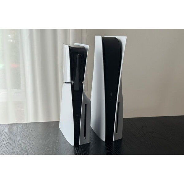 پلیاستیشن 5 اسلیم (PS5 Slim) نسخهای جمعوجورتر و بهینهشده از کنسول پلیاستیشن 5 است که در سال 2023 توسط سونی معرفی شد. این مدل با طراحی باریکتر و سبکتر نسبت به نسخه اصلی PS5، تجربهای مشابه از بازیهای نسل نهمی را در قالبی کوچکتر و مقرونبهصرفهتر ارائه میدهد. PS5 Slim همچنان از همان پردازنده AMD Ryzen Zen 2 و پردازنده گرافیکی RDNA 2 بهره میبرد که قابلیت اجرای بازیها در رزولوشن 4K و نرخ فریم بالا را فراهم میکند. این کنسول از یک SSD سریع با ظرفیت 1 ترابایت بهره میبرد که باعث بارگذاری سریعتر بازیها و محتوا میشود. همچنین، PS5 Slim از فناوریهای پیشرفتهای مانند Ray Tracing برای جلوههای نوری واقعگرایانه، 3D Audio برای صدای سهبعدی، و Adaptive Triggers در کنترلر DualSense پشتیبانی میکند که تجربه گیمینگ را به سطح جدیدی ارتقا میدهد. طراحی کنسول بهگونهای است که علاوه بر زیبایی، عملکرد خنککنندگی و صدای کمتر را نیز به ارمغان میآورد. PS5 Slim برای گیمرهایی که به دنبال عملکرد قدرتمند در یک بستهبندی جمعوجورتر هستند، گزینهای عالی است. این کنسول بهخوبی تمام ویژگیهای نسل جدید را در یک اندازه کوچکتر و جذابتر ارائه میدهد.