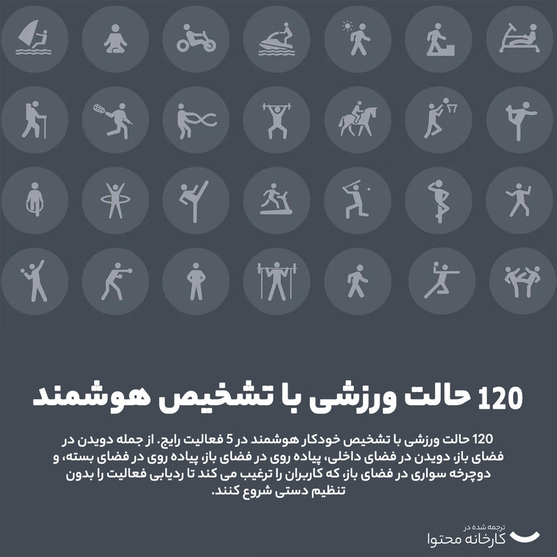سنسورهای ورزشی و سلامتی : تشخیص حرکات دست , سنجش سطح استرس , شمارنده ضربان قلب , سنجش اکسیژن خون , سنجش کیفیت خواب