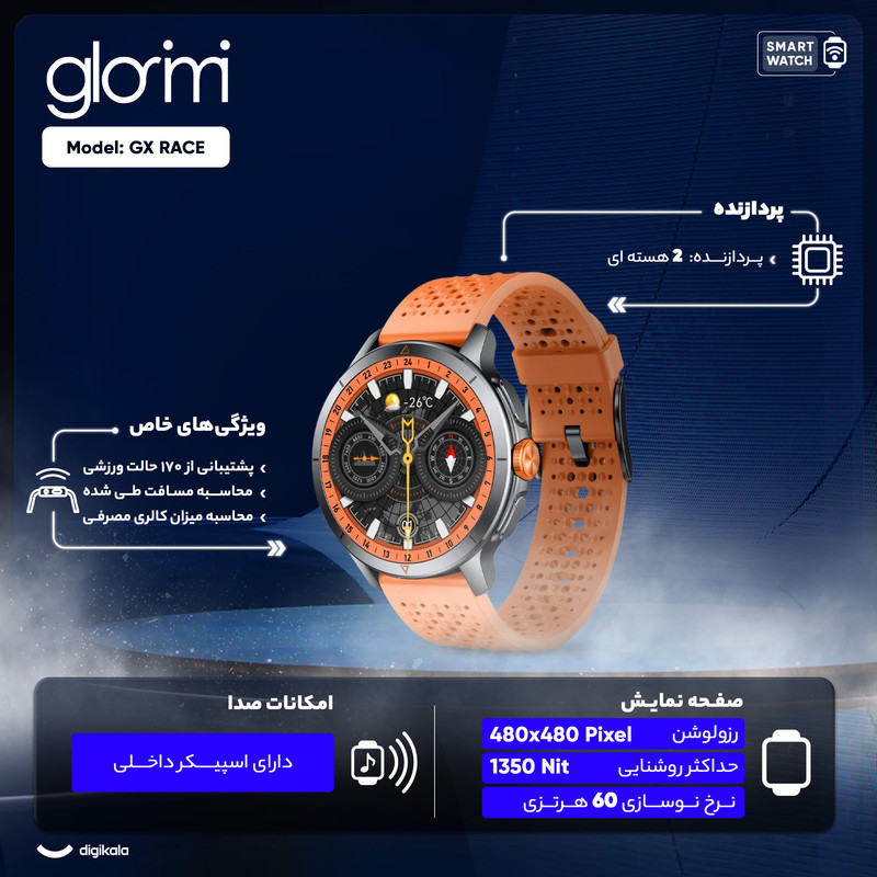 قابلیتهای ساعت هوشمند : قابلیت مکالمه از طریق بلوتوث , کنترل موسیقی (Music Player) , قابلیت تغییر طرح ساعت یا تم , صفحه همیشه روشن (Always-on Display)