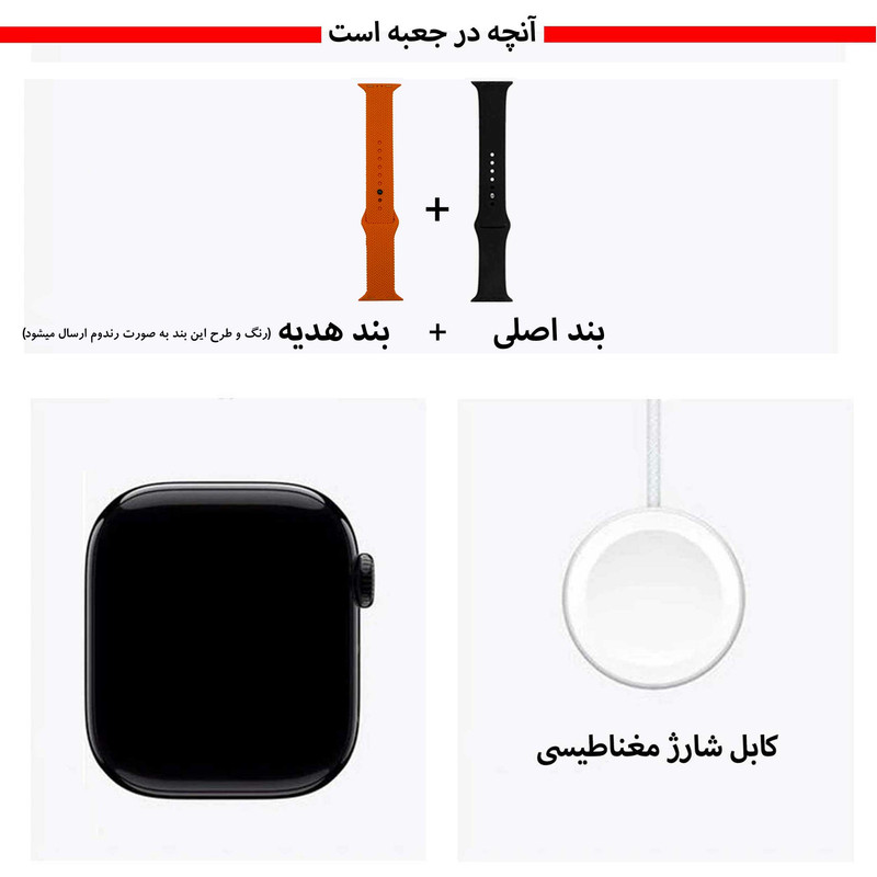 اقلام همراه : کابل شارژ وایرلس، بند سیلیکونی هدیه (رنگ این بند به صورت رندوم ارسال میشود)، کارت راهنمای فارسی