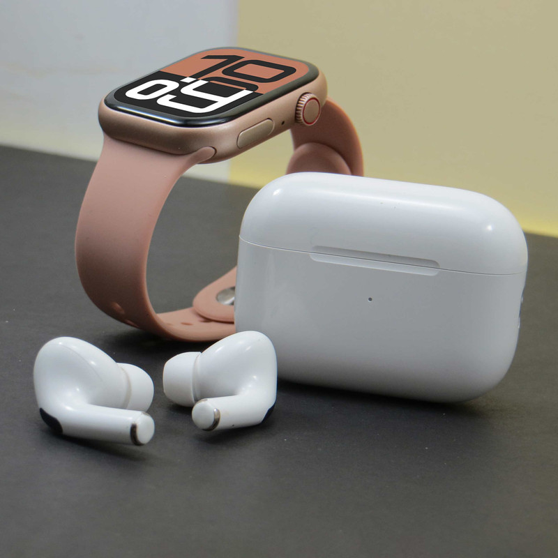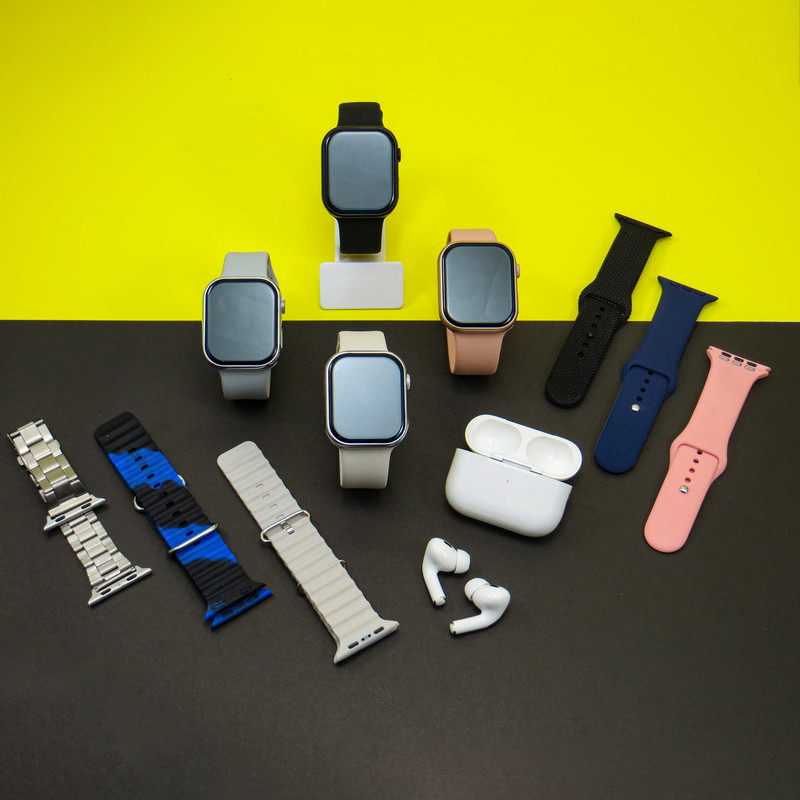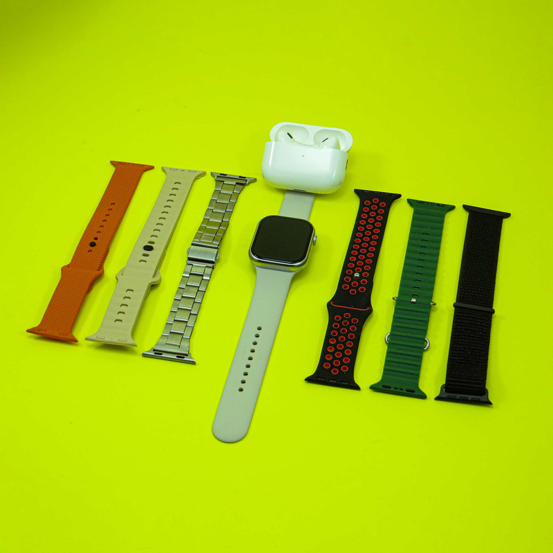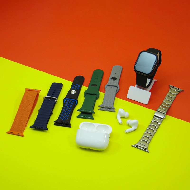 قابلیت های ویژه : دارای هفت بند با طرح ها و رنگ های متفاوت + هندزفری Airpod Pro طرح اپل
