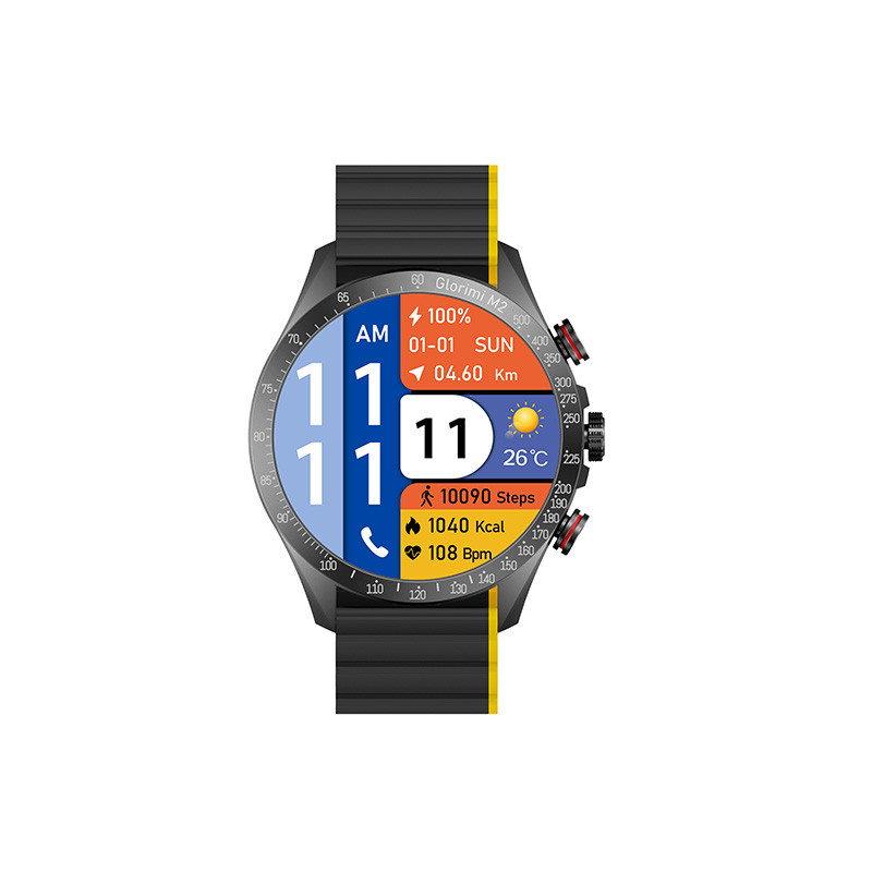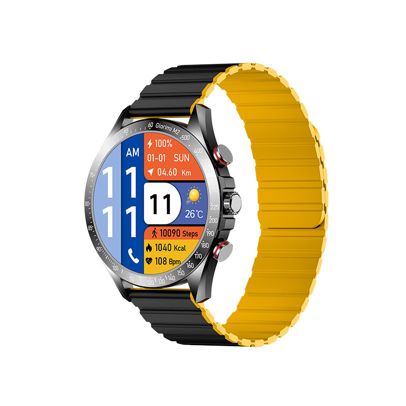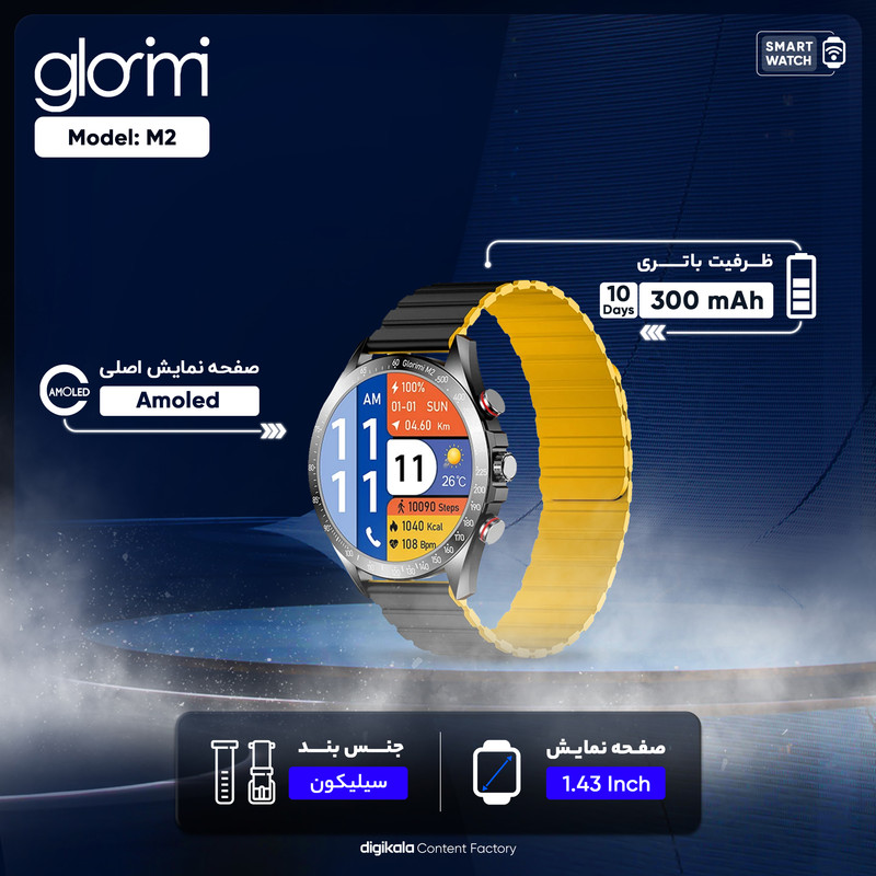 ساعتهای هوشمند امروزه طرفداران بسیاری دارند. این ساعتها علاوه بر کارایی بالا از زیبایی مطلوبی برخوردار هستند و جایگزین مناسبی برای ساعتهای کلاسیک هستند. در بازار تنوع بسیار بالایی از ساعتهای هوشمند دیده میشود. یکی از ساعتهای باکیفیت موجود در بازار ساعت هوشمند گلوریمی مدل M2 است. این مدل با 59 گرم وزن و بند سیلیکونی مگنتی روانه بازار شده است. نمایشگر این ساعت هوشمند 1.43 اینچ واز نوع Ultra-Clear AMOLED است. رزولوشن صفحهنمایش 466x466 پیکسل است و تصویر واضح و شفافی را به نمایش میگذارد. این محصول برند گلوریمی با اکثر گوشیهای موبایل سازگار است. این ساعت دارای حسگرهای متنوعی است که باعث میشود بتوانید فعالیتهای روزانهی خود را بهراحتی اندازهگیری کنید. از جمله این امکانات میتوان از قابلیت تماس بلوتوثی، سنجش ضربان قلب، نمایش نوتیفیکیشنها و پیامک، انواع سنسورهای سلامتی و ورزشی، سنجش فشار خون، قابلیت کنترل موزیک و پایش خواب اشاره کرد.