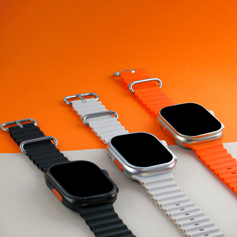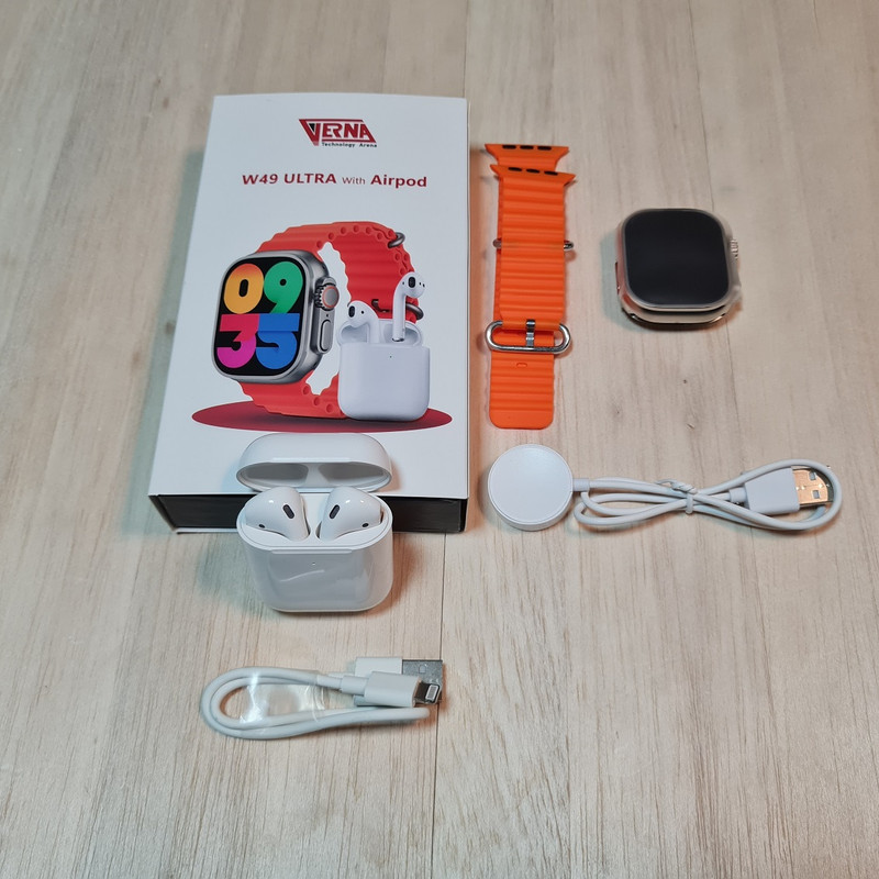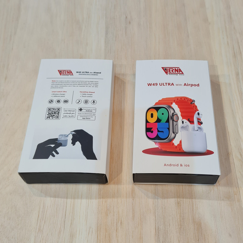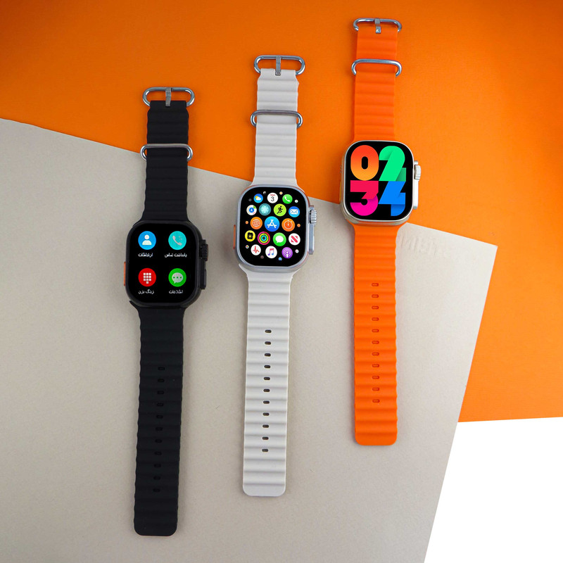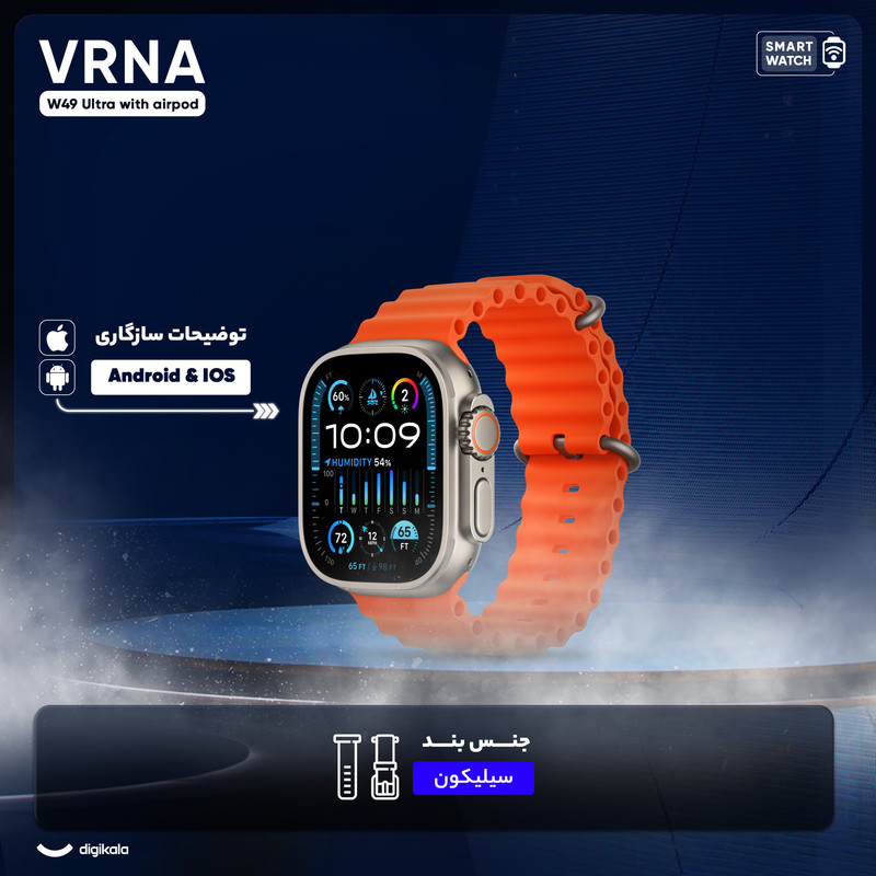 ساعت هوشمند ورنا مدل W49 Ultra with airpod دارای قابلیت های کنترل موسیقی (Music Player)، قابلیت مکالمه از طریق بلوتوث، پشتیبانی از زبان فارسی در منو و سیستم‌عامل بند سیلیکون