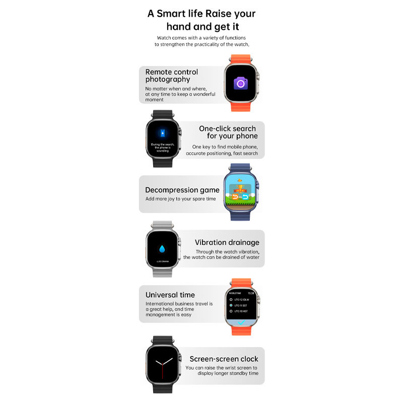 قابلیتهای ساعت هوشمند: صفحه نمایش رنگی , صفحه نمایش لمسی , کنترل سطح اکسیژن خون , پشتیبانی از زبان فارسی در منو و سیستمعامل