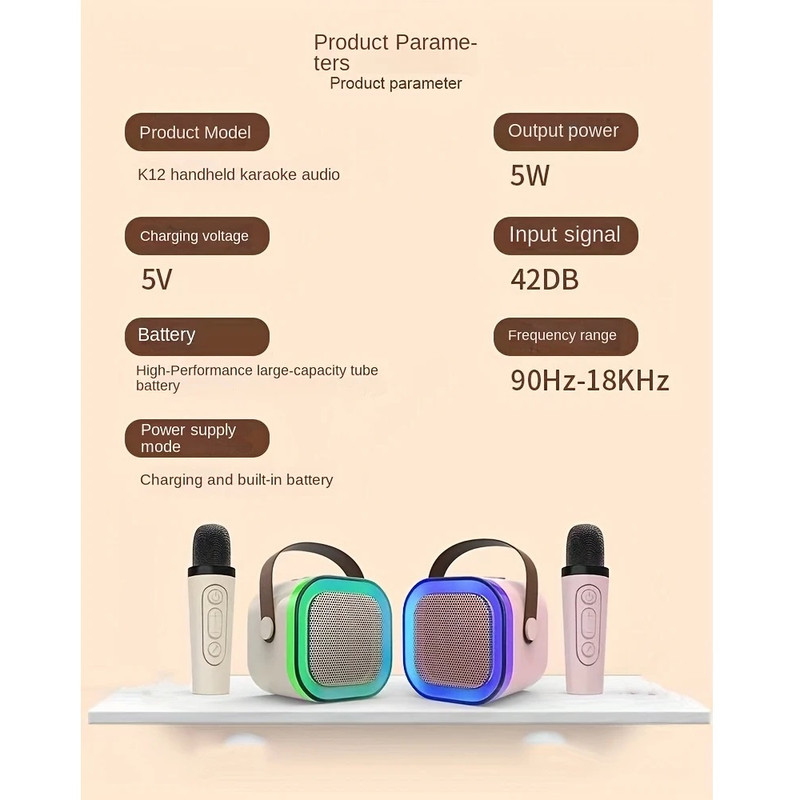 میکروفون بیسیم قابل حمل با اسپیکر، همیشه و همه جا همراه شما برای لحظات نشاطانگیز! این دستگاه همهکاره با طراحی سبک و جمعوجور، بهترین انتخاب برای خوانندگان مبتدی و حرفهای، مجریان مهمانیها و حتی برای سرگرمی در سفر است. میکروفون بیسیم با بلندگوی 6 واتی خود صدایی رسا و شفاف ارائه میدهد که فضای هر جمعی را زنده میکند. با باتری قابل شارژ 800 میلیآمپری و پورت مدرن، دیگر نگران تمام شدن باتری نخواهید بود، هم میتوانید از طریق USB آن را شارژ کنید و هم از باتری داخلی بهره ببرید. سیستم بیسیم این محصول به شما آزادی حرکت کامل میدهد تا بدون محدودیت اجرا کنید. این دستگاه هوشمندانه با طیف گستردهای از دستگاهها از جمله موبایل، تبلت، لپتاپ و پخشکنندهها سازگار است و به راحتی میتوانید آن را به میز یا هر سطح دیگری قرار دهید.