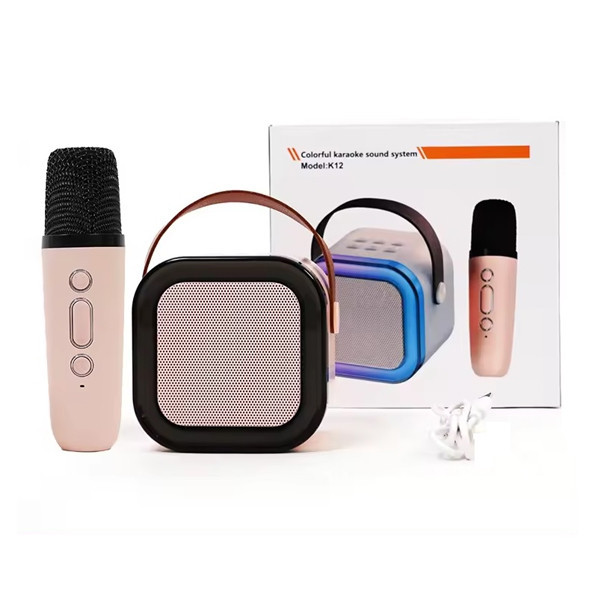 اسپیکر و میکروفن بلوتوثس مدل karaoke با ابعاد اسپیکر 9x8x6 و ابعاد میکروفن 4x13 سانتی متر، دارای سه حالت رقص نور میباشد و قابلیت شارژ کردن دارد همچنین میکروفن ابلیت 5 حالت تغییر صدا دارد و با فشار دادن دکمه میکروفن روی اسپیکر صدای خوانند جذف می شود و خودتان بخ جای خواننده میتوانید بخوانید. توان خروجی 5 وات میباشد و دارای پورتهای USB، AUX و کارت حافظه میباشد.