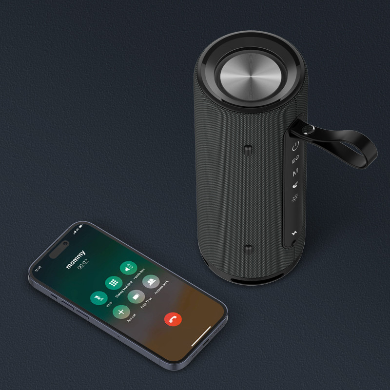 همراه با یک بند حمل بسیار راحت که به طور دائمی به بلندگو متصل است، تعبیه شده است. به راحتی می توانید اسپیکر را با خود حمل کرده یا به چیزی شبیه قلاب یا شاخه درخت آویزان کنید.