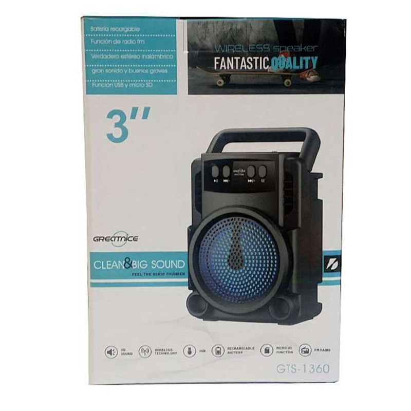 اسپیکر بلوتوثی قابل حمل گریت نایس مدل GTS-1360 اسپیکر پرتابل GTS-1360 را می توان به شکل ایستاده به کار برد و علاوه بر بلوتوث، با کارت حافظه، فلش مموری سازگاری دارد و همچنین و جود یک ساب 3 اینچی باعث شده است تا بتوانید ازقدرت صدای شگفت انگیزبهره ببرید.