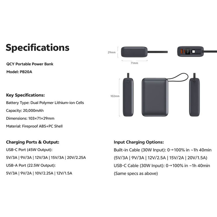 ابعاد پاوربانک: 10.2x7.1x2.9 سانتیمتر