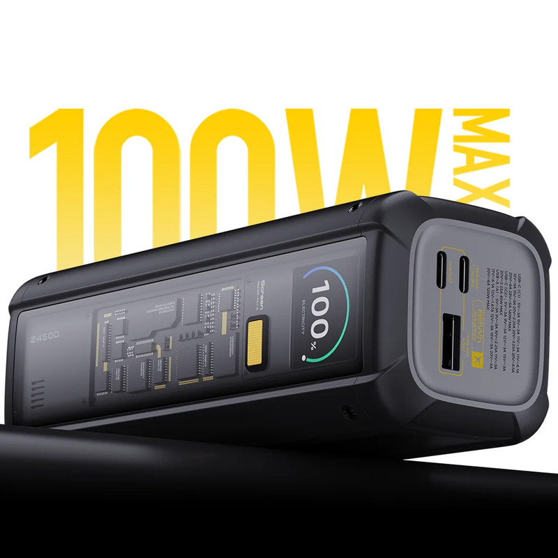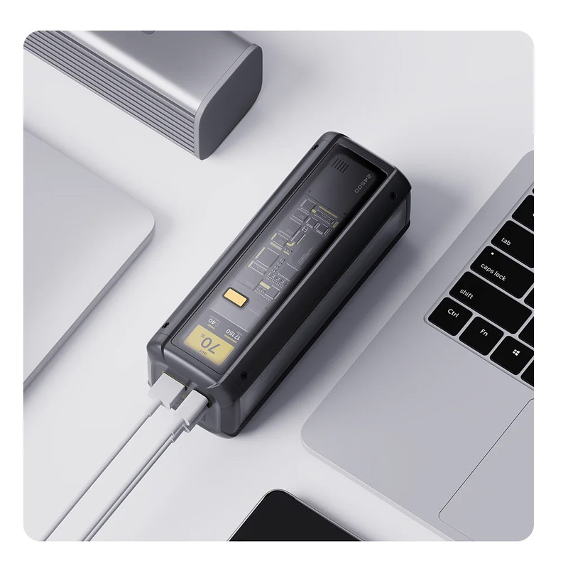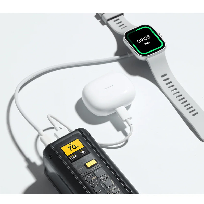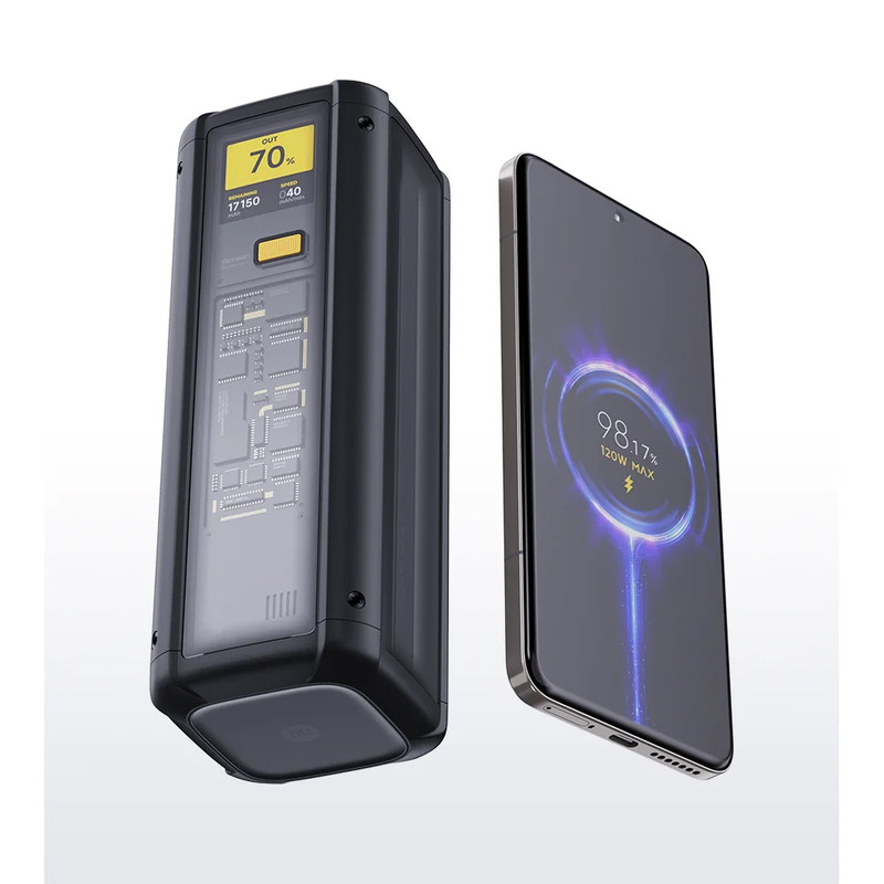 پاوربانک ۲۱۲ وات شیائومی مدل P03MI با ظرفیت اسمی عظیم ۲۴۵۰۰ میلیآمپرساعت، یک منبع انرژی فوقالعاده قوی و حرفهای برای شارژ انواع گجتها از جمله لپتاپ است. این محصول با وزن ۸۴۰ گرم و ابعاد ۱۶x۵.۵x۵.۵ سانتیمتر، از باتری لیتیوم یونی بهره میبرد. جنس بدنه آن از پلاستیک مقاوم با طراحی شفاف ساخته شده و در برابر گرما مقاومت دارد. این پاوربانک قدرتمند، دارای سه درگاه خروجی است: دو پورت USB-C (با برچسب C1 و C2) و یک پورت USB-A. بیشترین توان خروجی کلی آن ۲۱۲ وات است، که پورت C1 به تنهایی تا ۱۴۰ وات و پورت USB-A تا ۱۲۰ وات توان خروجی دارد، و این امکان را میدهد که لپتاپهای بسیار قدرتمند را با سرعت بالا شارژ کنید. درگاه ورودی و خروجی اصلی آن USB-C است و از شارژ فوق سریع (Super Fast Charging) و شارژ سریع (Fast Charging) با استاندارد USB PD ۳.۰ پشتیبانی میکند. ولتاژهای خروجی آن شامل ۵، ۹، ۱۲ و ۲۰ ولت است که گستره وسیعی از دستگاهها را پوشش میدهد. قابلیتهای ویژه آن شامل شارژ همزمان چند دستگاه، شارژ ایمن (MultiProtect) و مدیریت هوشمند شارژ است تا دستگاههای متصل در برابر آسیبهای ناشی از نوسانات برق محافظت شوند. یکی از ویژگیهای کاربردی این پاوربانک، صفحه نمایش LCD است که میزان دقیق شارژ باقیمانده باتری را نشان میدهد. با وجود ظرفیت اسمی ۲۴۵۰۰ میلیآمپرساعت، ظرفیت واقعی آن ۱۴۰۰۰ میلیآمپرساعت است و با گوشیهای موبایل، تبلت، لپتاپ و سایر وسایل الکترونیکی سازگار است. اقلام همراه آن نیز شامل یک کابل شارژ USB-C به USB-C است.