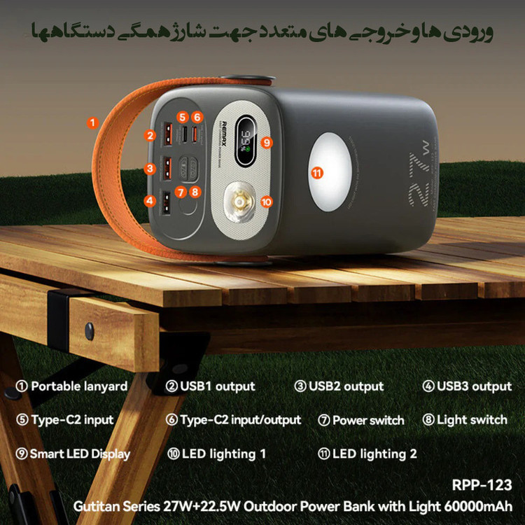 پاوربانک ریمکس مدل Fast Charge 22.5W Gutitan ظرفیت 60000 میلی آمپر ساعت
