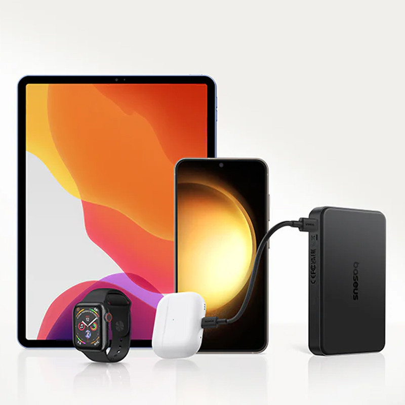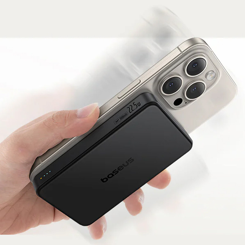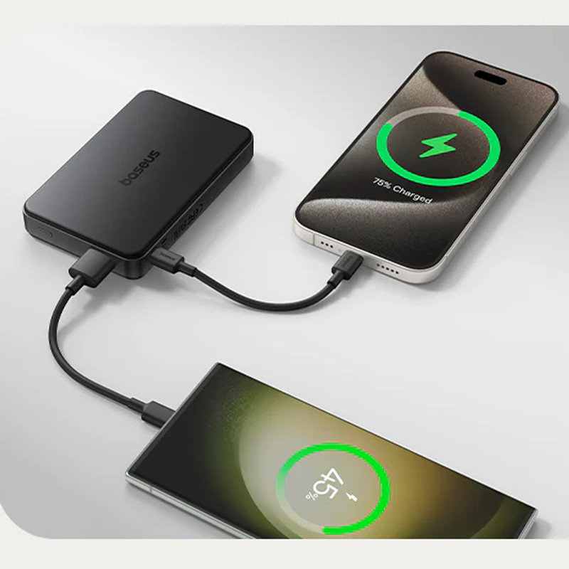 این پاور بانک با داشتن یک پورت USB-C و یک پورت USB-A در کنار قابلیت شارژ وایرلس، امکان شارژ همزمان سه دستگاه را برای شما فراهم می نماید. خروجی پورت USB-C به 20 وات و خروجی USB-A به 22.5 وات می رسد که در هنگام شارژ همزمان توان کلی بین پورت USB-C و USB-A تقسیم میشود. یکی از ویژگی های کاربردی پاور بانک بیسوس مدل p10080000 ظرفیت 10000 میلی آمپر ساعت، پشتیبانی از شارژ وایرلس 15 وات با استاندارد Qi2 است که این قابلیت فوق العاده امکان شارژ سریع برای تلفن همراه شما را فراهم می نماید. پاور بانک بیسوس مدل Qi2 ظرفیت 10000 میلی آمپر ساعت با انواع دستگاهها از جمله گوشی های آیفون (12به بالا) و سایر تلفن های همراه دارای قاب های مگ سیف سازگاری دارد؛ به واسطه قابلیت شارژ وایرلس دیگر دغدغه ای در رابطه با حمل کابل برای استفاده از پاور بانک نخواهید داشت.