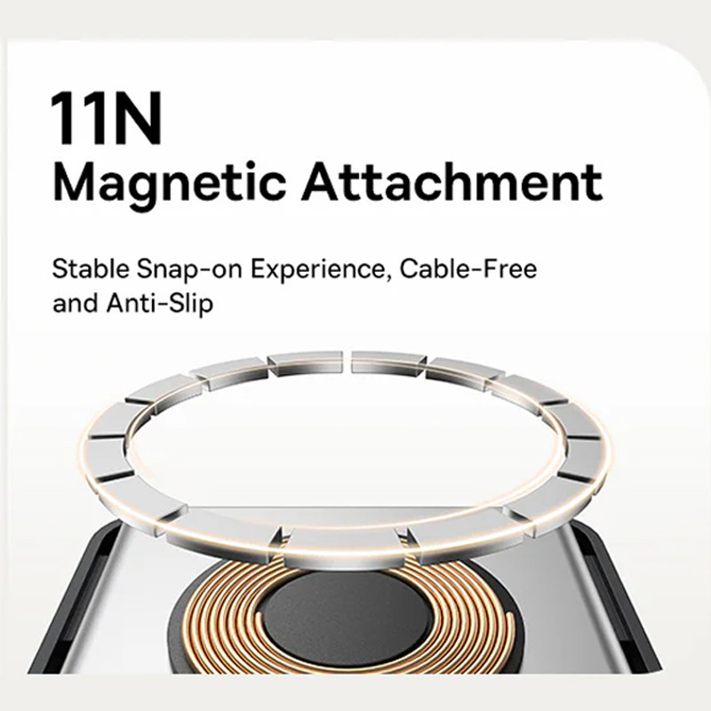 از دیگر از ویژگی های به کار رفته در این پاور بانک استفاده از 11 مگنت مغناطیسی است که اتصال پایدار تلفن همراه بدون کابل و لغزش را برای تلفن همراه شما فراهم می نماید و از بابت امنیت تلفن همراه و افتادن آن خیالتان راحت باشد. علاوه بر این ها، تکنولوژی به کار رفته در این دستگاه وضعیت شارژ دستگاه را بررسی نموده و در برابر شارژ اضافه و گرمای بیش از حد، امنیت دستگاههای شما را تضمین می نماید.