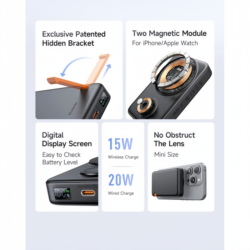 تکنیک تل با افتخار تجربهای متفاوت و لوکس از دنیای فناوری را به شما ارائه میدهد. با تمرکز بر سه اصل کیفیت، خلاقیت و نوآوری، ما به عنوان واردکننده پیشرو در حوزه محصولات فناوری، بهترین لوازم جانبی روز دنیا را در دسترس مشتریان خود در ایران قرار میدهیم. یکی از این محصولات منحصربهفرد، پاوربانک Mcdodo مدل CH-146 است؛ یک راهکار کامل برای شارژ ایمن و سریع دستگاههای شما. پاوربانک Mcdodo مدل CH-146 با ظرفیت 10000mAh و توان خروجی 15 وات، امکان شارژ بیسیم دستگاههای سازگار با فناوری Qi مانند گوشیهای آیفون، اپل واچ و ایربادها را به شما میدهد. طراحی هوشمند و مگنتی آن، به همراه پایه تاشو، این پاوربانک را به گزینهای ایدهآل برای استفاده در هر موقعیتی، از سفر تا محل کار، تبدیل کرده است. همچنین، پورت USB-C با توان 20 وات و قابلیت شارژ سریع PD، به شما این امکان را میدهد تا گوشیهای هوشمند خود را در کمترین زمان ممکن و با کارایی بالا شارژ کنید. یکی از ویژگیهای برجسته CH-146، پایه مگنتی مخفی آن است که میتواند به عنوان یک استند قابل تنظیم مورد استفاده قرار گیرد؛ ایدهآل برای تماشای ویدئو یا انجام تماسهای تصویری در حین شارژ. این ویژگیها تجربهای راحت و کاربردی را برای کاربران فراهم میکند. با وزن تنها 220 گرم، این پاوربانک بهراحتی در کیف یا جیب شما جا میگیرد و همواره همراه شما خواهد بود. این پاوربانک از تکنولوژی GaN بهره میبرد، که علاوه بر افزایش کارایی، به کاهش ابعاد و وزن محصول نیز کمک کرده است. وجود محافظتهای چندگانه از جمله محافظت در برابر دمای بالا، اتصال کوتاه و ولتاژ بیش از حد، ایمنی دستگاههای شما را در حین شارژ تضمین میکند، بنابراین میتوانید با خیالی آسوده از آن استفاده کنید. تکنیک تل مفتخر است که به عنوان واردکننده این محصول پیشرفته، پاوربانک Mcdodo مدل CH-146 را در اختیار مشتریان خود قرار میدهد. این پاوربانک با ترکیبی از ظرفیت بالا، طراحی حرفهای، و ویژگیهای منحصربهفرد، بهترین انتخاب برای کسانی است که به دنبال شارژری چندمنظوره، کارآمد و با کیفیت بالا هستند. تجربهای بینظیر از شارژ دستگاههای خود را با پاوربانک Mcdodo CH-146 تجربه کنید.