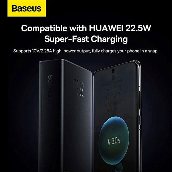 حداکثر توان خروجی پاوربانک Baseus PPXJ060001 برابر 22.5 وات است. توان ورودی و خروجی پورتهای پاوربانک PPXJ060001 به شرح زیر است.