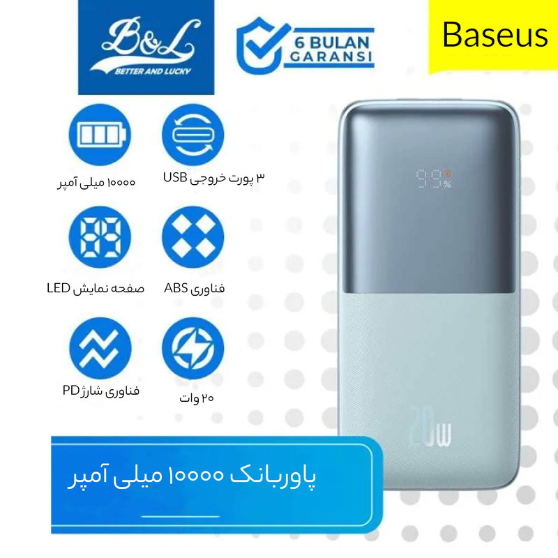 پاوربانک باسئوس مدل PPBD2-1020 ظرفیت 10000 میلی‌آمپر ساعت