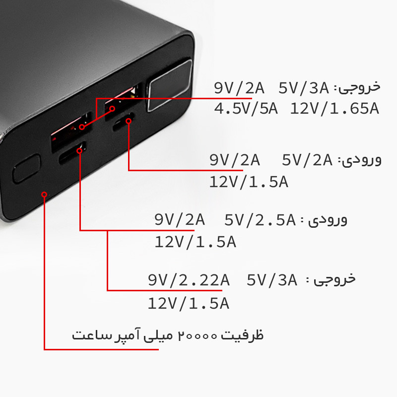 با پیشرفت تکنولوژی، استفاده ما از اینترنت و اپلیکیشنهای موبایل و تبلت بیشتر شد. ولی همیشه خالی کردن زودهنگام باتری دستگاه اعصاب خوردکن و دغدغه همه کاربران هست. پاوربانک مدل V82 از برند معتبر PZX، یک پاوربانک بسیار قدرتمند میباشد. نمایشگر میزان شارژ، بدنه فلزی، باتری لیتیوم پلیمری بادوام، تکنولوژی شارژ سریع (Fast Charge)، ابعاد استاندارد و خوشدست، توان 22.5 وات، برند معتبر PZX، شارژ سریع PD و سرعت شارژ بسیار خوب باعث میشه که از خریدش نگذرید. راستی به لطف وجود تکنولوژی PD (پاور دلیوری) میتوانید موبایل را سریع تر، ایمن تر و مطمئن شارژ کنید و این فوق العاده است.