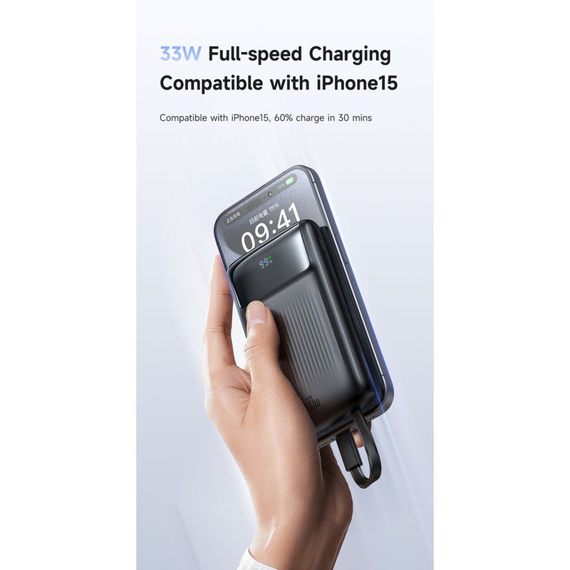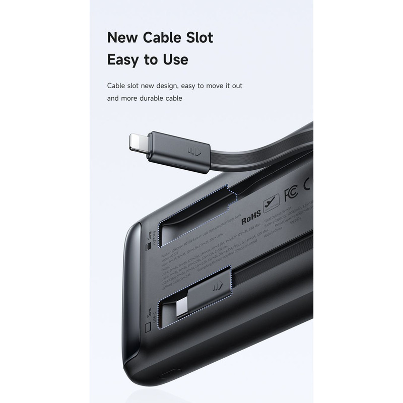 کابل تایپ سی این پاوربانک دارای توان کلی ۳۳ وات بوده که باعث شده شما بتوانید دستگاه خود را با سرعت بالای شارژ کنید. بعلاوه کابل لایتنینگ (آیفونی) این پاوربانک دارای توان کلی ۱۲ وات است که می توانید با استفاده از این کابل با سرعت مناسب دستگاه های خود را شارژ کنید.