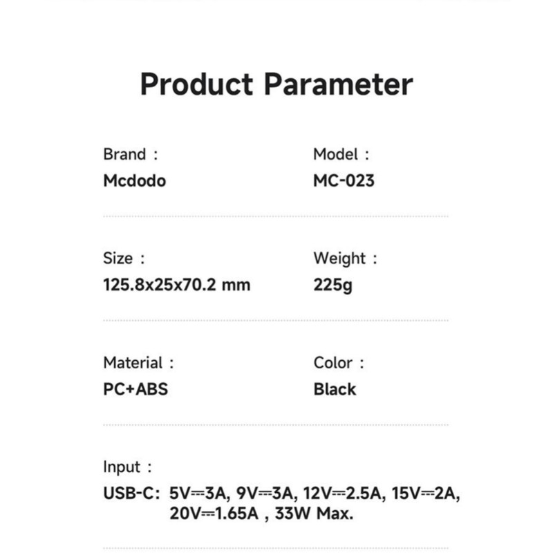 این پاوربانک دارای ابعاد ۷۰.۲*۲۵*۱۲۸.۵ میلی متر و وزنی حدود ۲۲۵ گرم دارد که باعث شده شما بتوانید به راحتی پاوربانک ۱۰ هزار مک دودو رو به هرجای منتقل کنید.