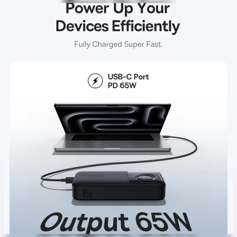 شارژر قابل حمل Baseus Free2Pull 65W با طراحی کارآمد خود، دارای یک پورت دوطرفه Type-C با حداکثر توان خروجی 65 وات و یک کابل تایپسی دوطرفه قرقرهای با حداکثر توان خروجی 60 وات، امکان شارژ همزمان دو دستگاه را فراهم میآورد. علاوه بر این، هر دو پورت تایپسی به شما این امکان را میدهند تا پاوربانک را با حداکثر توان ورودی 65 وات توسط پورت و 60 وات توسط کابل، به سرعت شارژ نماید.