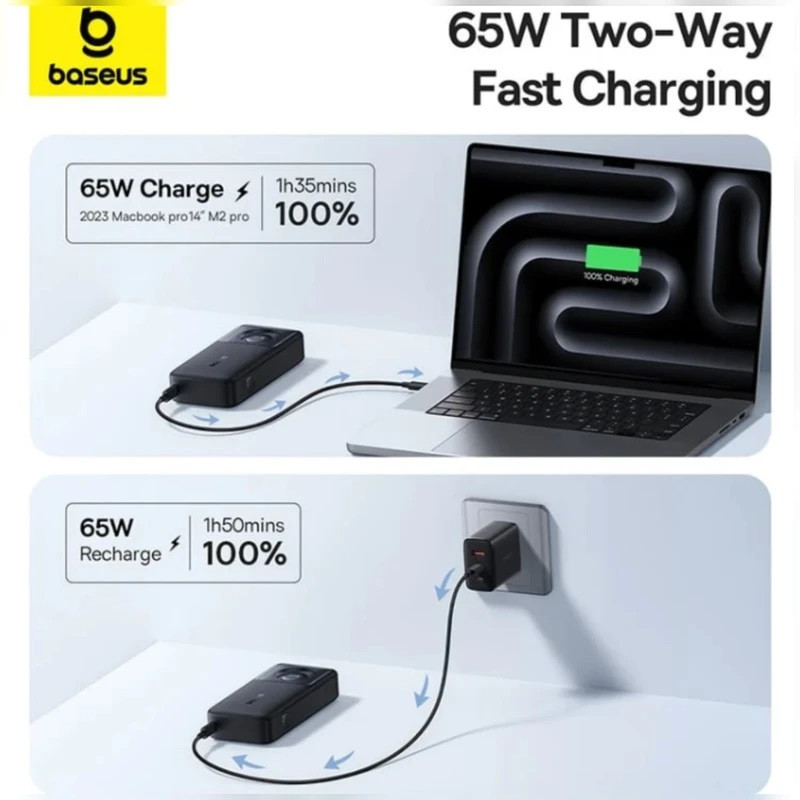 پاوربانک بیسوس مدل 65W NOMOS ظرفیت 20000 هزار میلی آمپر همراه با کابل USB-C