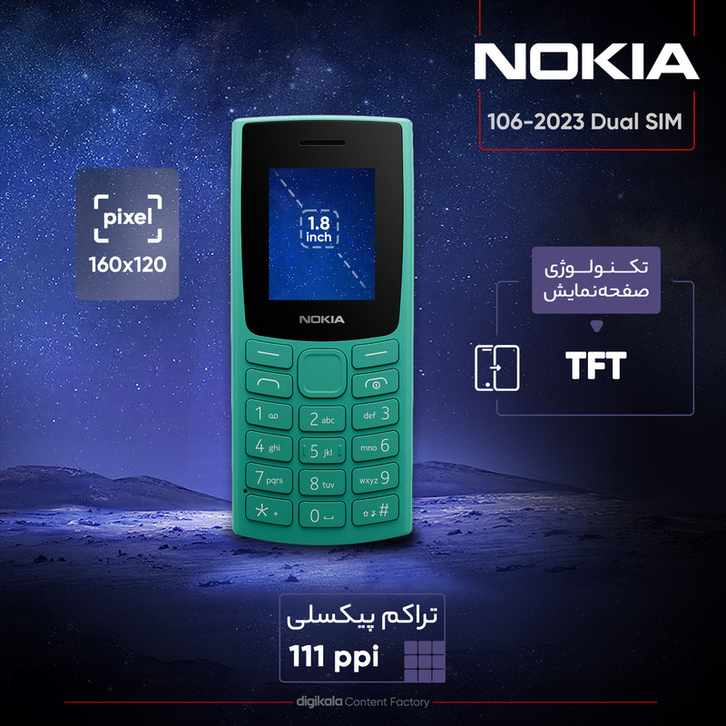 گوشیهای کلاسیک هنوز هم در بین کاربران طرفداران خود را دارند و بدون هیچ تعریف اضافی باید بگوییم که نوکیا در این زمینه، محصولات باکیفیتی را روانه بازار کرده است. نوکیا 106 2023 یکی از همین گوشیهای کلاسیک است. در نمای روبهرویی این گوشی به صفحهنمایش با ابعاد 1.8 اینچ و رزولوشن 120×160 پیکسل رنگی مجهز شده که آیکونهای و اعلانها را بهخوبی نمایش میدهد. خبری از سنسور دوربین در قسمت پشتی و دوربین سلفی نیست که برای یک گوشی اقتصادی کلاسیک در این بازه قیمتی، کاملا طبیعی است. ابعاد مناسب سبب شده تا فضای چندانی را اشغال نکند و از طرفی وزن سبک 79.4 گرمی این گوشی در استفاده طولانی مدت، خستگی برای دست بههمراه نخواهد داشت. باتری 1000 میلیآمپرساعتی نوکیا 106 2023، همانند اکثر گوشیهای کلاسیک، به ازای هر بار شارژ صد درصدی، زمان آماده بهکار بسیار خوبی را ارائه میکند و دیگر نیاز به شارژ هر روز نخواهد داشت. پشتیبانی از حافظه جانبی هم فضای ذخیره سازی بیشتری را در اختیارتان قرار میدهد. در مجموع اگر به دنبال خرید گوشی اقتصادی هستید که قیمت به نسبت ارزان داشته باشد و در استفاده روزمره عملکرد خوبی را شاهد باشید، نوکیا 106 2023 میتواند یکی از بهترین گزینههای ممکن برای شما باشد.