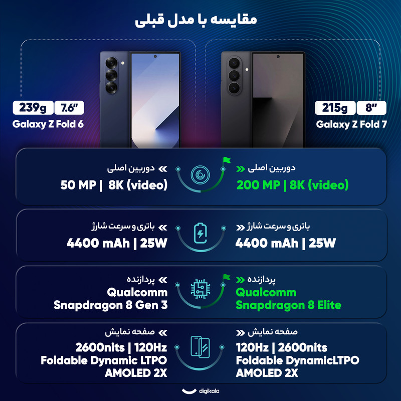 ابعاد : در حالت باز 158.4x143.2x4.2 - در حالت تا شده 158.4x72.8x8.9 میلیمتر