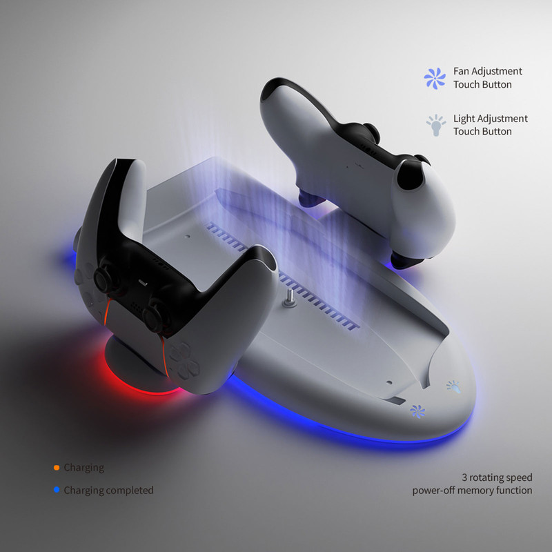 پایه چند منظوره TP5-3528 دارای سه حالت چرخش فن سریع، نرمال و آهسته است و یک سیستم گردش هوای عالی در اطراف داک ایجاد میکند که به دفع گرما و افزایش طول عمر کنسول PS5 شما کمک زیادی میکند.