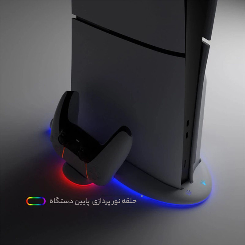 پایه چند منظوره PS5 دابی مدل TP5-3528 یک خنک کننده شیک و حرفهای برای نگهداری عمودی کنسول پلی استیشن 5 است. این پایه امکان استفاده برای نسخه استاندارد و دیجیتال PS5 را دارد و علاوه بر آن قابلیت قرارگیری و شارژ کنترلرهای بیسیم DualSense را نیز به شما میدهد.