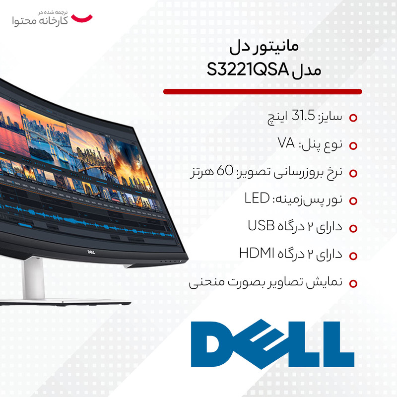 مشخصات فنی : نمایشگر S3221QSA مجهز به یک پنل 32 اینچی VA است که